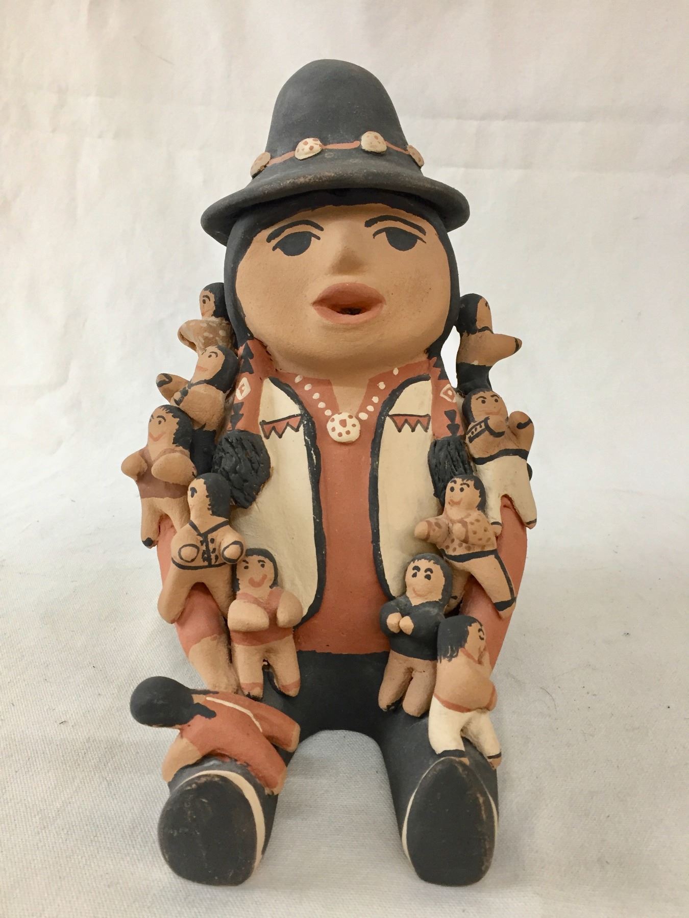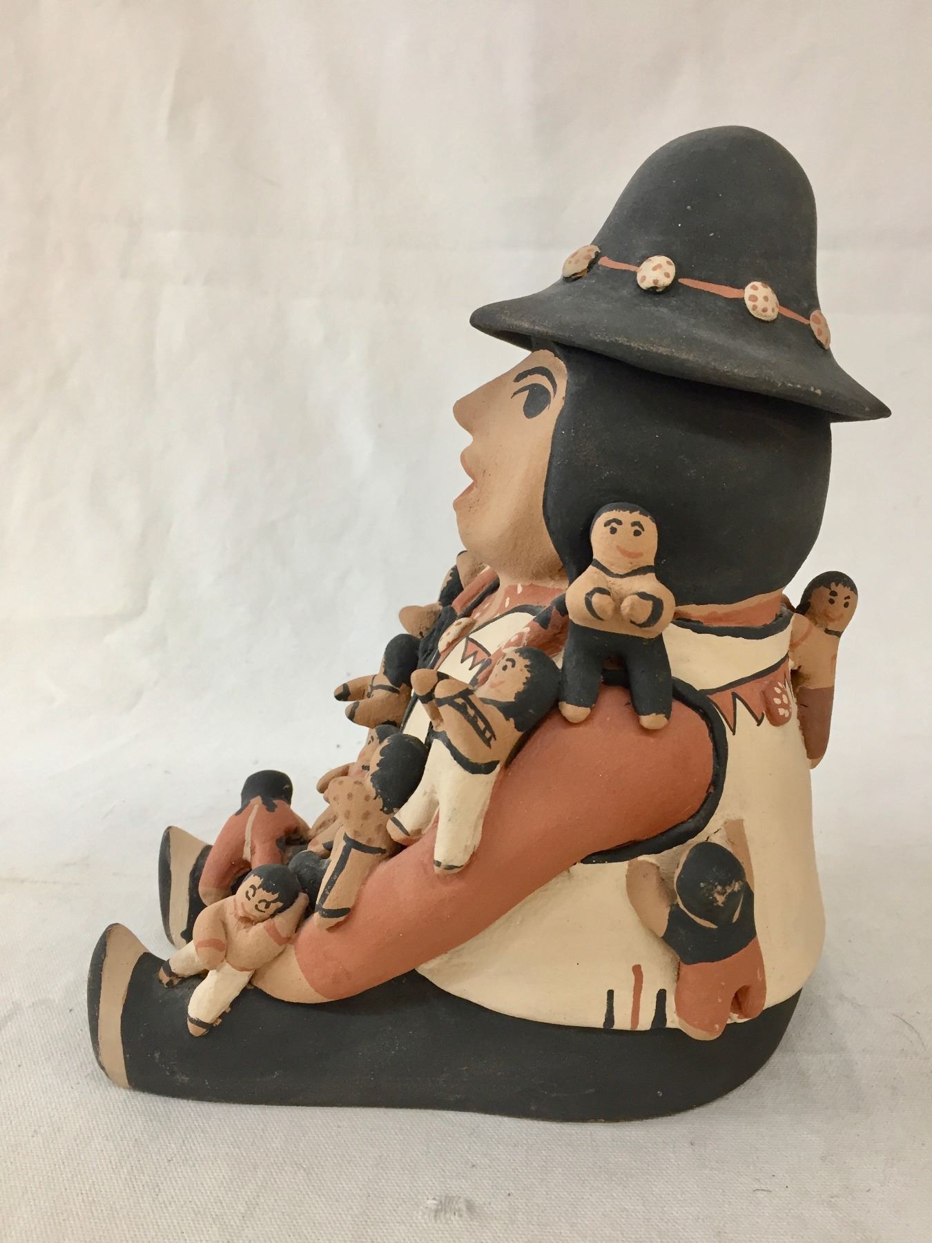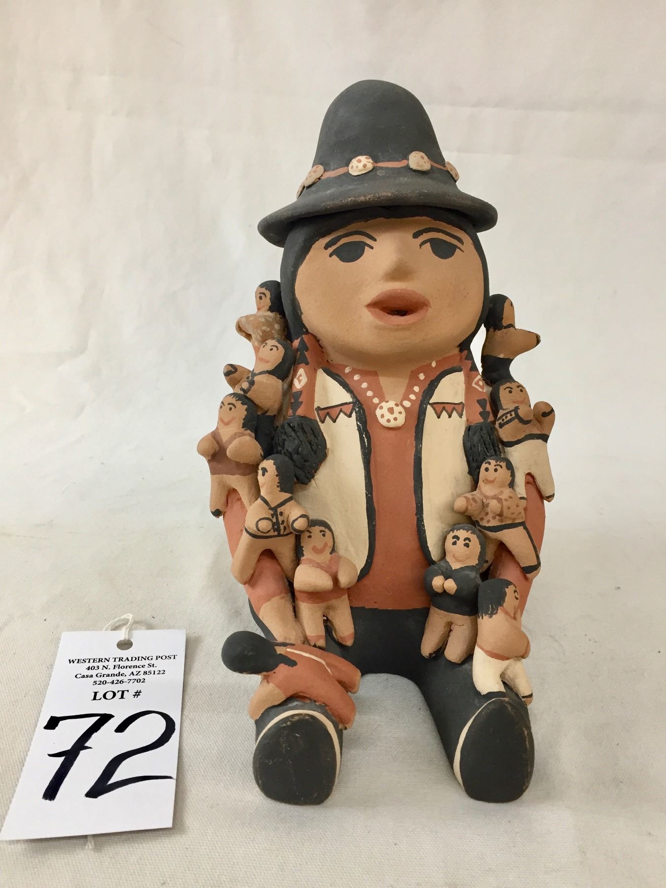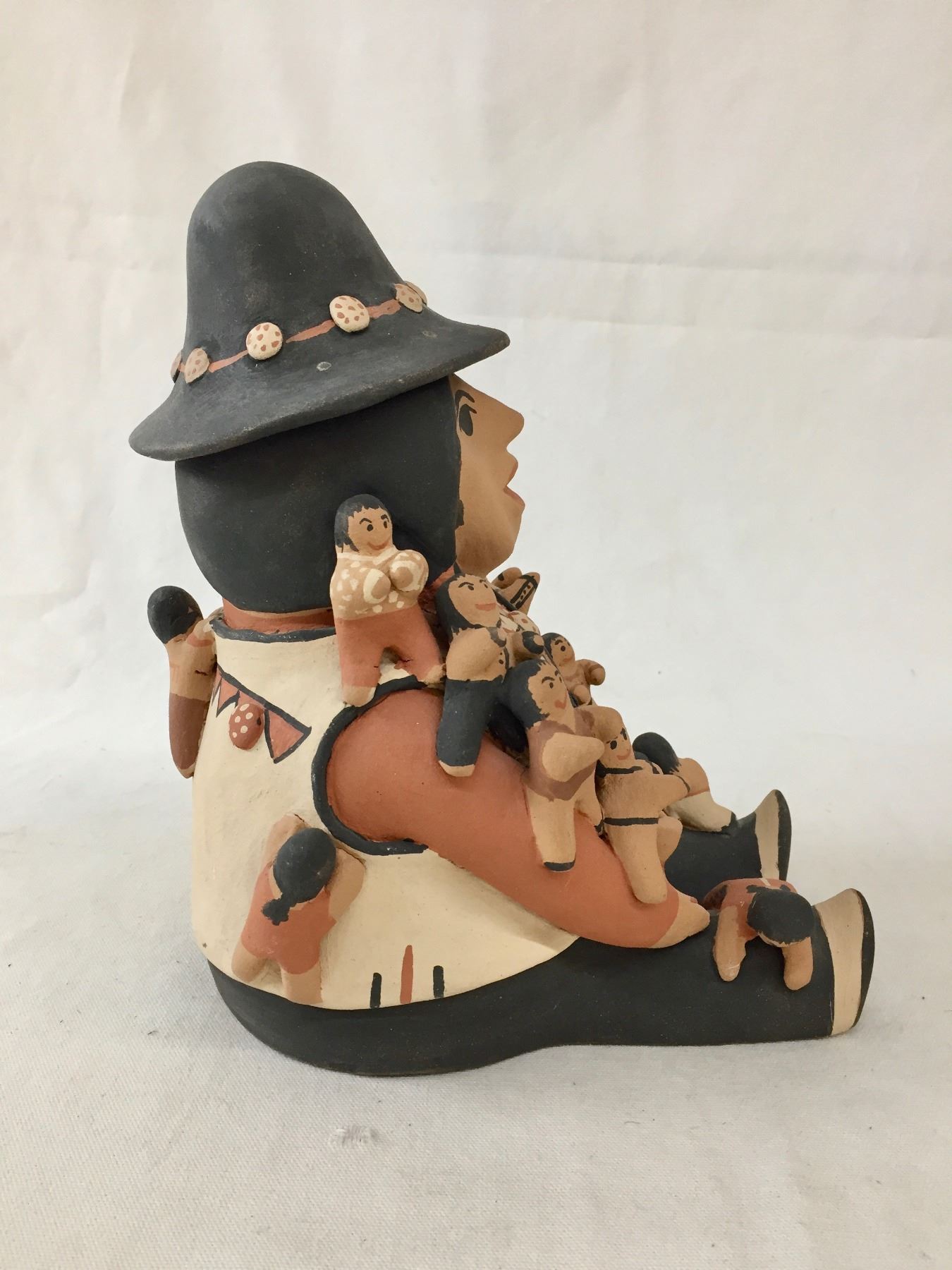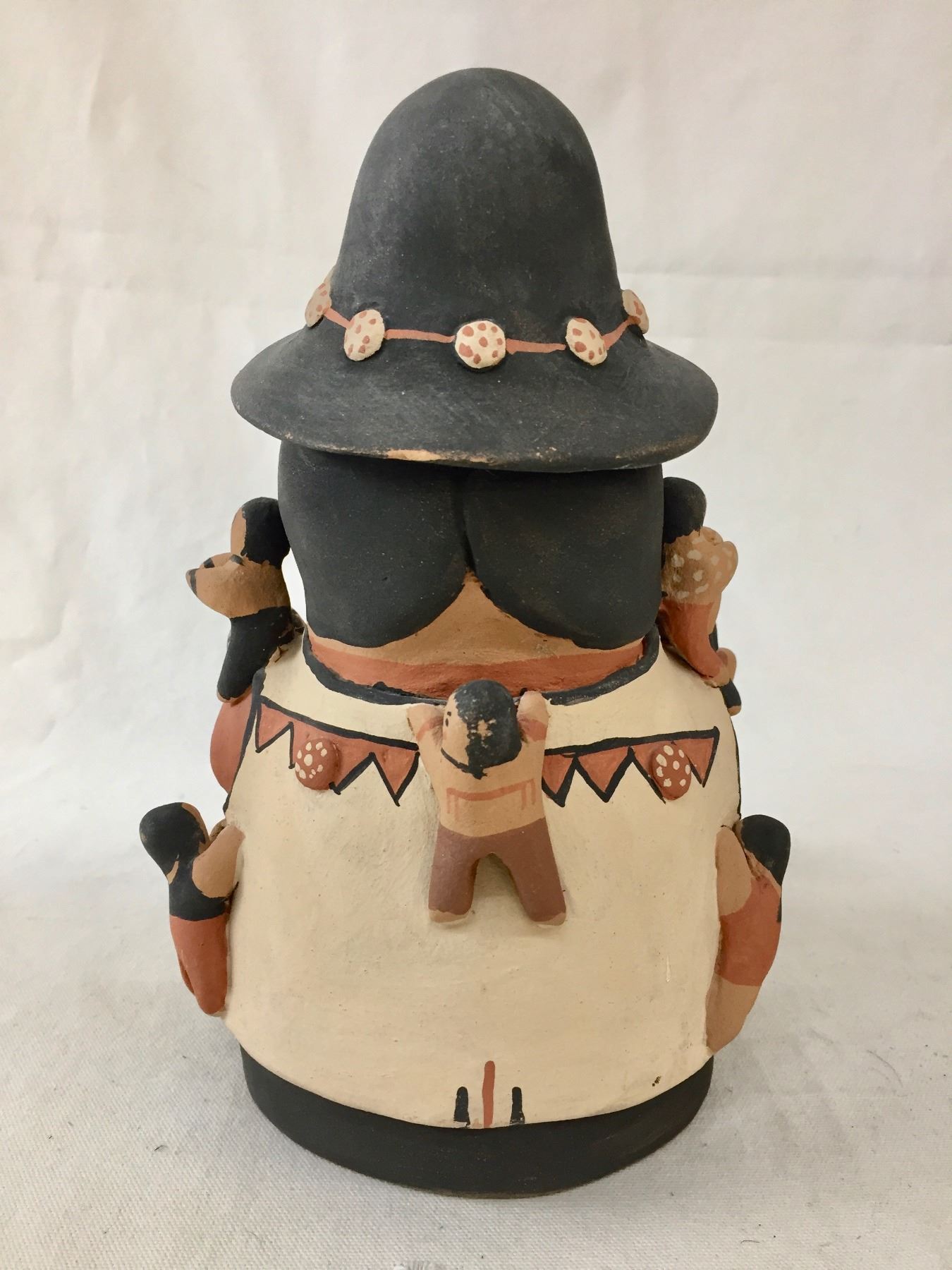 Description: For sale in this lot is a nice, Jemez Pueblo storyteller pot. This piece of pottery features a large mother figure with 11 smaller figures crawling all over it! This piece was intricately designed and hand painted. Maker: An Unknown Jemez Pueblo Artist. Approx. Age: Vintage. Size: 6”w x 8-3/4”t. Condition: Pretty good for its age, normal wear expected. Please look closely at the pictures - they are an important part of our description. Shipping: There will be a $10 handling / packaging fee for shipping this lot. The actual cost of postage will be added on top of that.