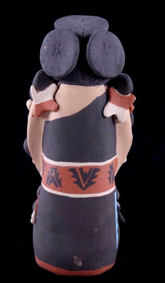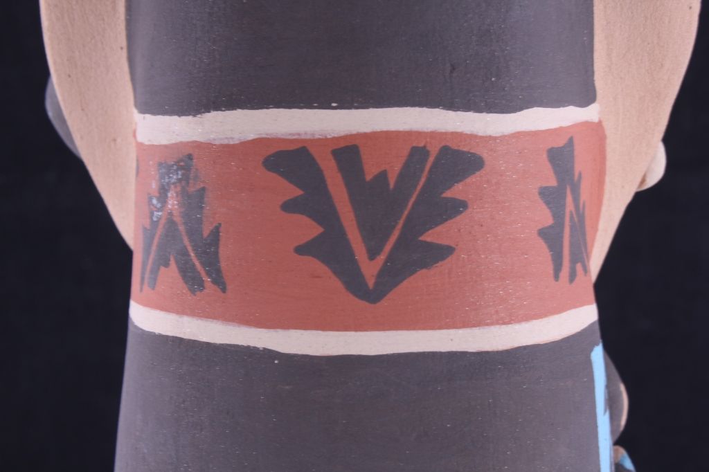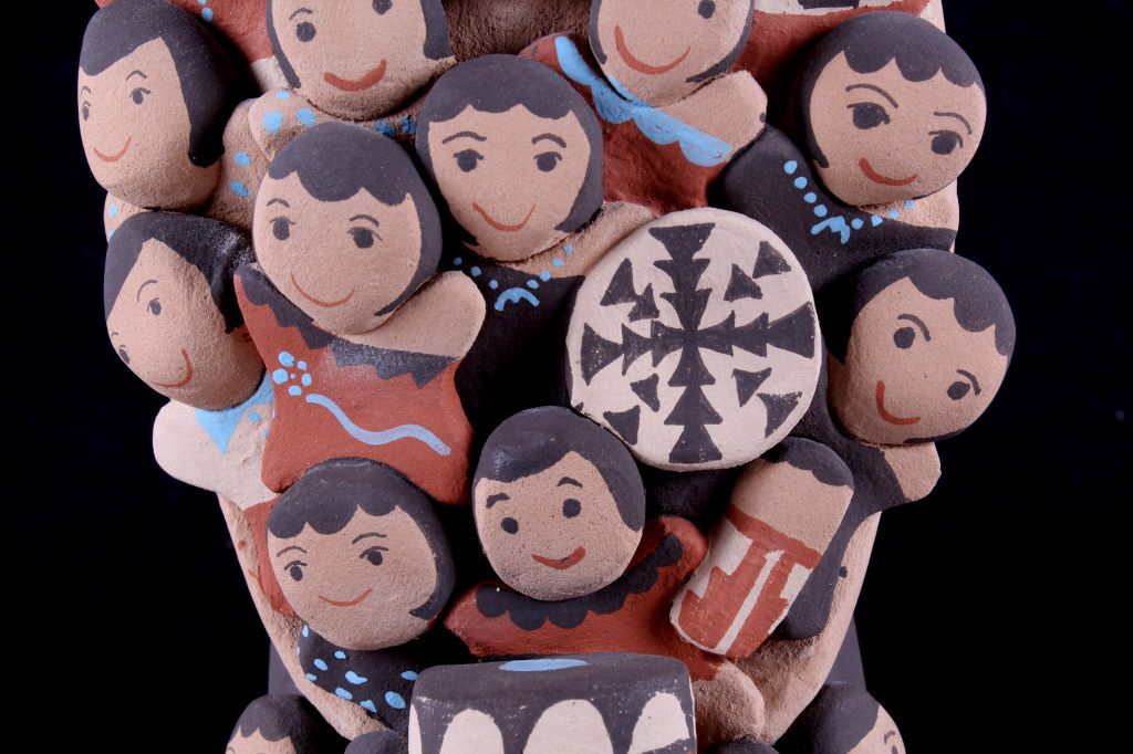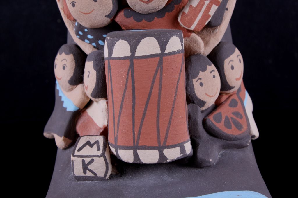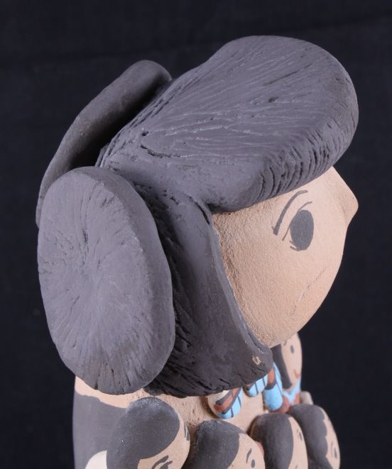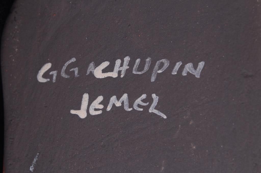This is an original Jemez Pueblo Native  American Indian storyteller figure. The piece  is hand crafted pottery with wonderful  paints. This shows a main story telling  figure with 18 smaller children figures across her front. Bottom signed, "G. Gachupin  Jemez." This is a mid 20th century vintage  piece. Measures 9.75"x3.75"x6 1/8"