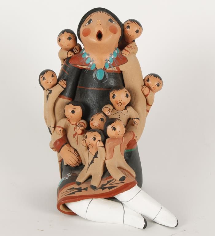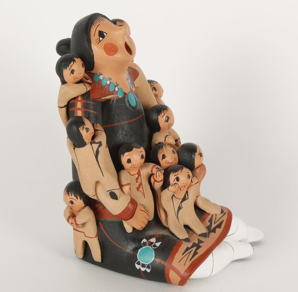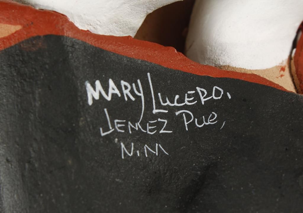 Signed "Mary Lucero Jemez Pue N.M." on base. Hand painted. 4-1/2" wide x 4" long x 6-1/2" high.