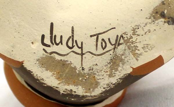 Jemez Pueblo Storyteller Doll measures 3x6x4, has had a nose job. The nose has been glued. Signed on the bottom by artist Judy Toya