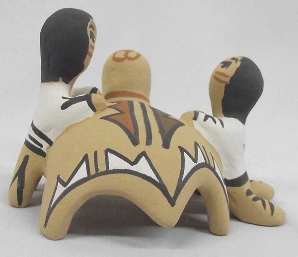 Native American hand crafted traditional pottery by Nancy Fragua. Storyteller dolls on a turtle, signed B.F. Jemez. Nancy hand gathers her own clay and fires it in the traditional way, measures approx. 3 x 4 inches. Buyers Pay Actual Shipping and Handling Charges(see terms and conditions for more information).