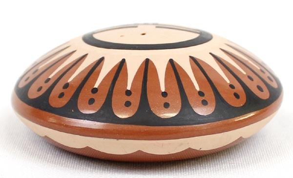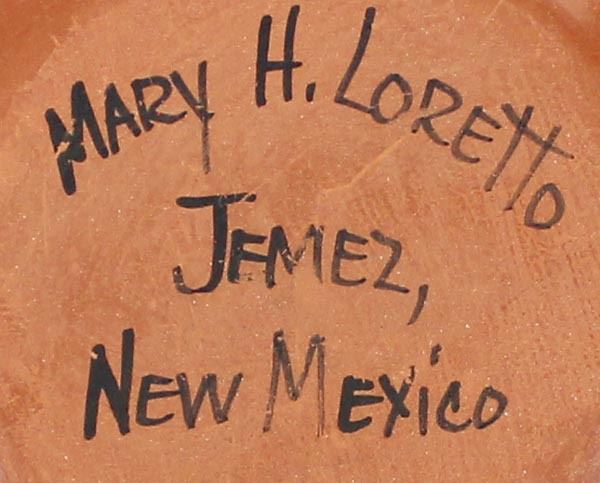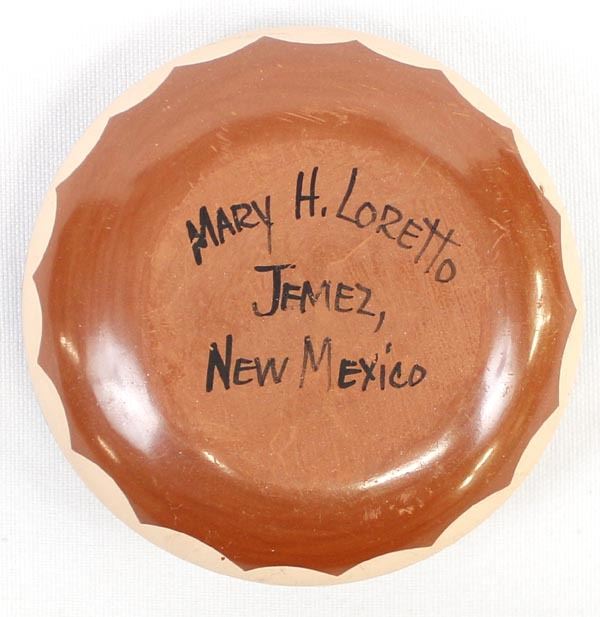 Native American Jemez Sun Face Pottery Seed Jar by Mary H. Loretto, measures 1''H x 3.5''D and is signed on the bottom, well executed
