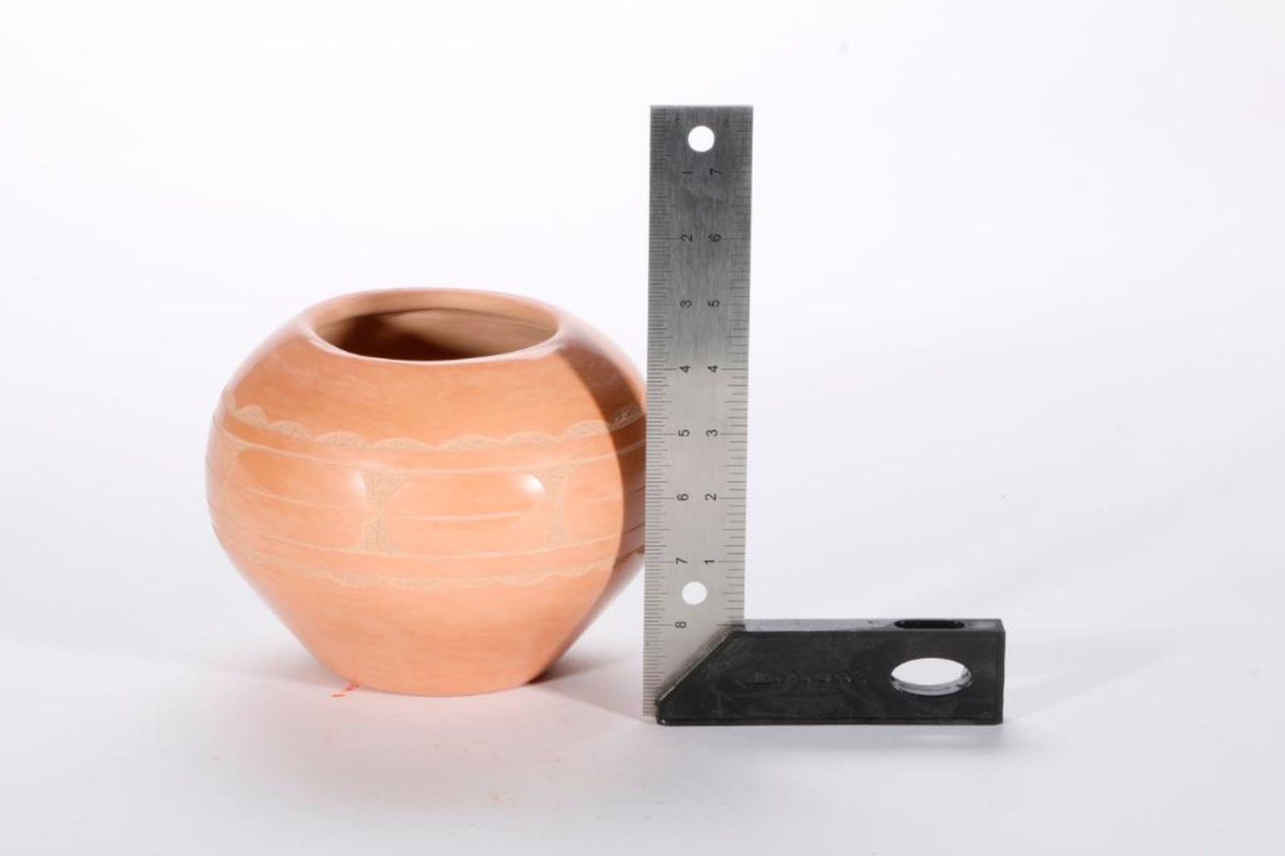 Jemez jar (5 ½" x 7 1/4 ") by Dena (E.D.) Yepa, feather design, cream colored