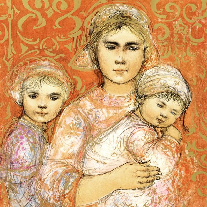 "Jenet, Mary and Wee Jenet" is a limited edition lithograph on paper, numbered and hand signed by Edna Hibel (1917-2014). Includes Certificate of Authenticity! Measures approx. 20" x 26" (with border), 16.5" x 19" (image).