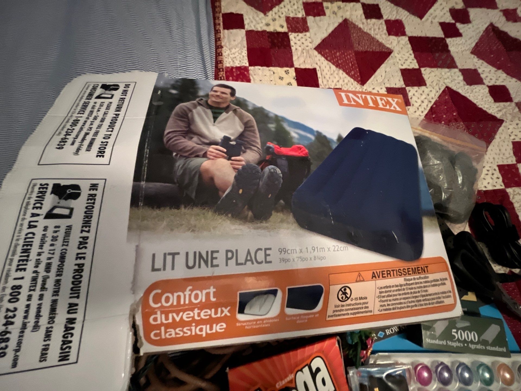 Jenga game with twin classic Downey, blowup mattress, chilli pepper, Lights, Arnold Schwarzenegger,