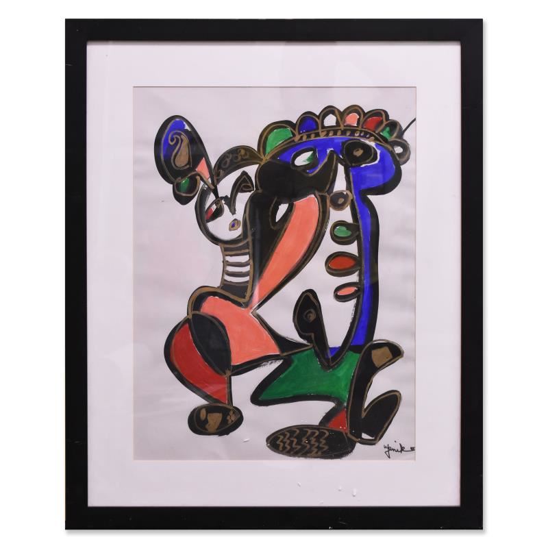 This is an original acrylic painting on paper by Jenik Cook, hand signed by the artist. This piece comes framed. Includes Letter of Authenticity. This piece comes from the artist's personal collection. Measures approx. 25 x 30.5" (frame), 17" x 23" (image). ** Please note: There is noticeable wear on the the frame and the paper is wavy. **