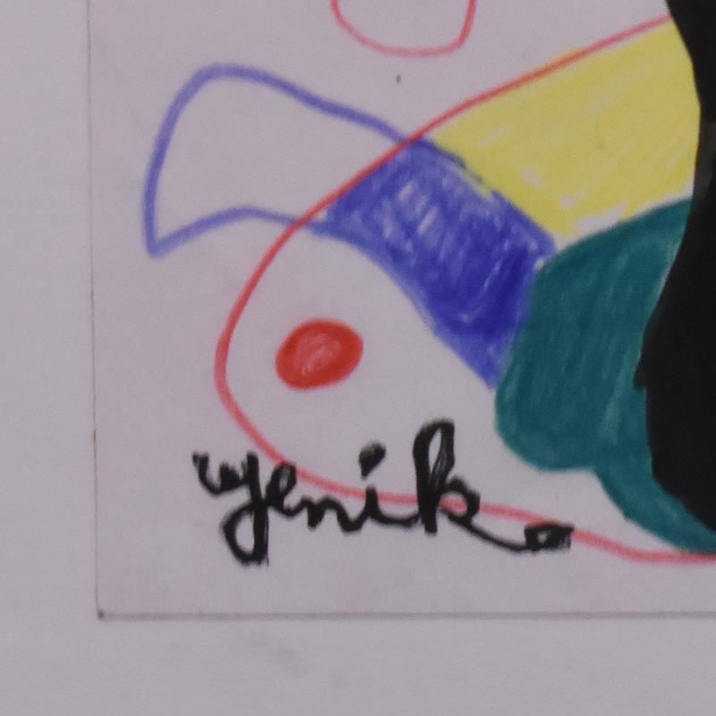 Jenik Cook, Framed Original Watercolor Painting, Hand Singed with Letter of Authenticity. This is an original watercolor painting on paper by Jenik Cook, hand signed by the artist. This piece comes framed. Includes Letter of Authenticity. This piece comes from the artist's personal collection. Measures approx. 34" x 29" (frame), 25" x 19" (image). ** Please note: There is noticeable wear on the corners and edges of the frame. **
