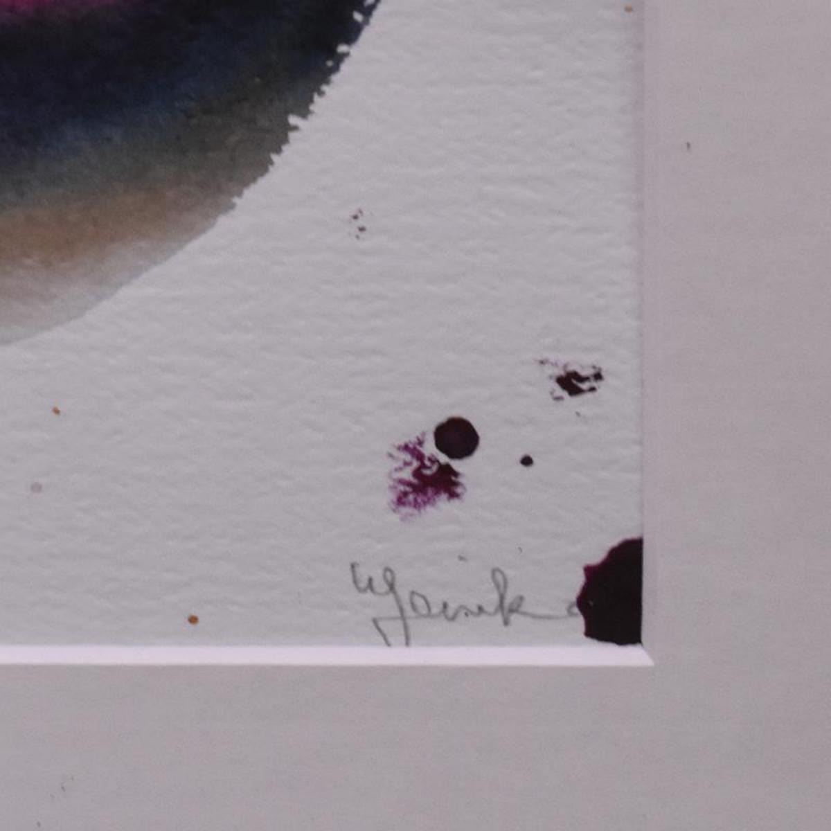 This is an original watercolor painting on paper by Jenik Cook, hand signed by the artist. This piece comes framed. Includes Letter of Authenticity. This piece comes from the artist's personal collection. Measures approx. 25.5" x 31.5" (frame), 18.5" x 22.5" (image). ** Please note: There is noticeable wear on the the frame and the paper is slightly wavy. ** Reference #: 246108