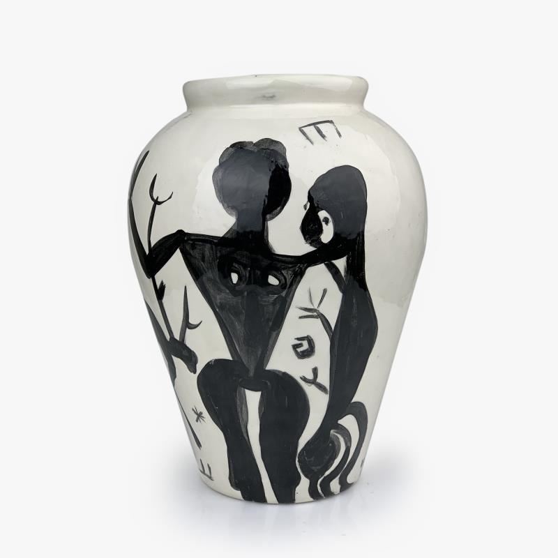 This is hand made ceramic decorative sculpture by Jenik Cook. Hand signed by the artist, it is accompanied by a letter of authenticity. This artwork comes from the artist's personal collection. Measures approximately 12" x 9" x 9".