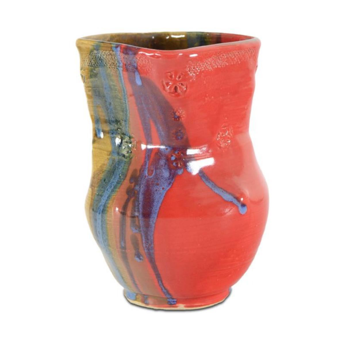 This is hand made ceramic decorative vase sculpture by Jenik Cook, hand signed by the artist. Includes Letter of Authenticity. This artwork comes from the artist's personal collection. Measures approx. 4" (diameter) x 7" (height). Reference #: 239809