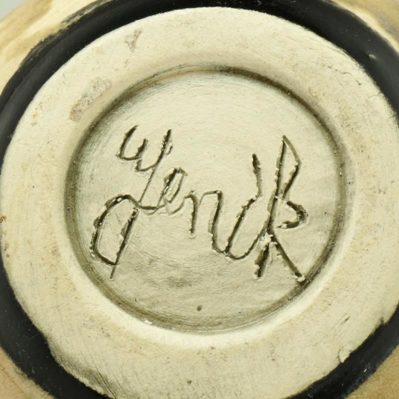 This is hand made ceramic sculpture by Jenik Cook. Hand signed by the artist, it is accompanied by a letter of authenticity. This artwork comes from the artist's personal collection. Measures approximately 4.5" x 3.5" x 3.5".