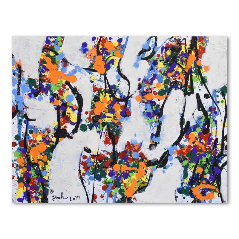 This is an original acrylic painting on stretched canvas by Jenik Cook, hand signed by the artist. Includes Letter of Authenticity. This piece comes from the artist's personal collection. Measures approx. 28" x 22" (image). There is some wear on the corne