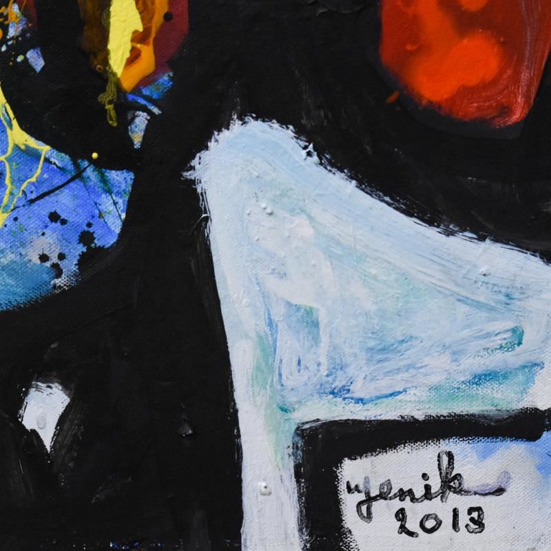 This is an original acrylic painting on gallery wrapped canvas by Jenik Cook, hand signed by the artist. Includes Letter of Authenticity. This piece comes from the artist's personal collection. Measures approx. 40" x 30" (image). There is some wear on the