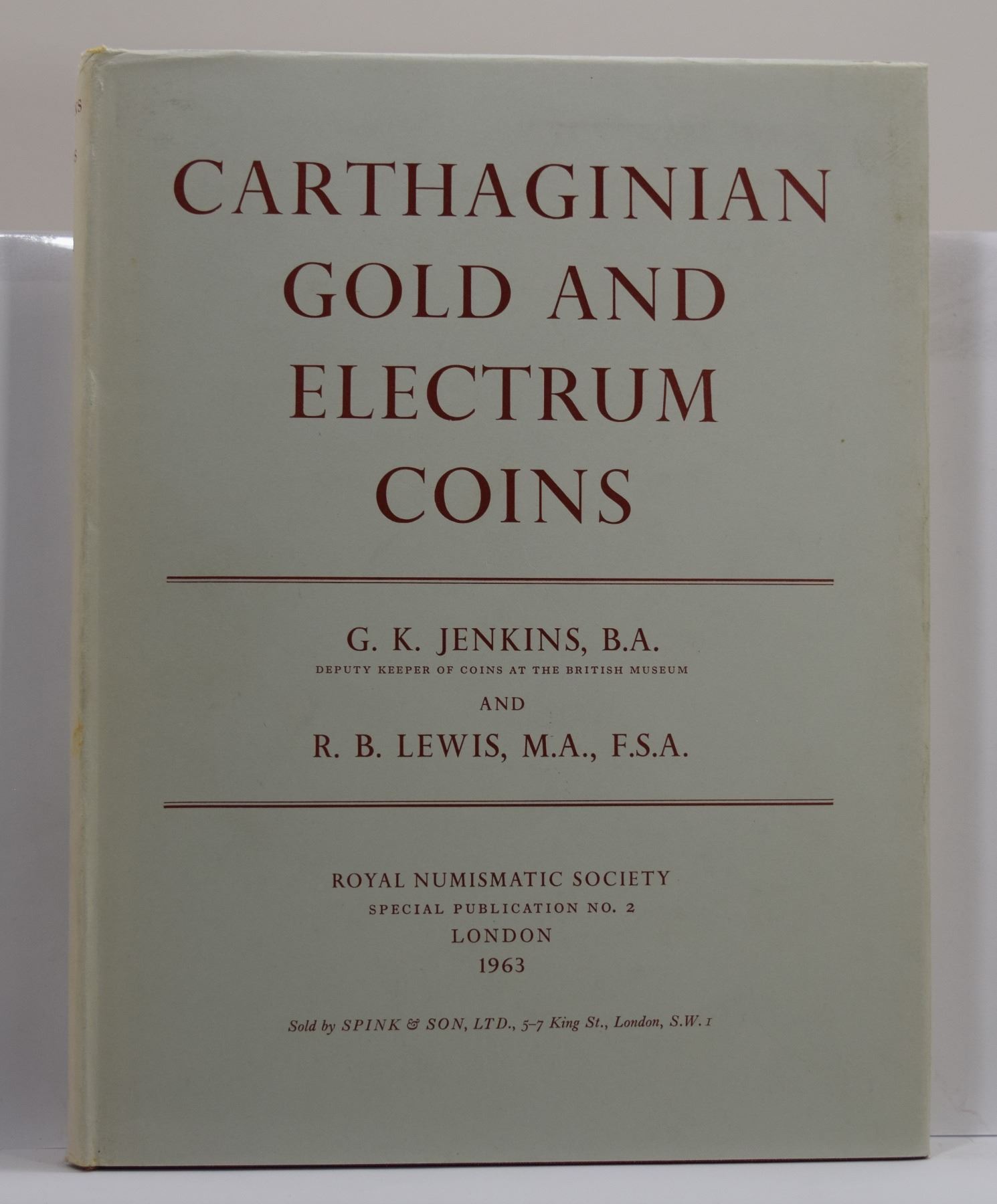 Jenkins, G.K. BA & R.B. Lewis, MA FSA. CARTHAGINIAN GOLD AND ELECTRUM COINS. Royal Numismatic Society. 1963. 4to, 140 pages; Hardcover w/ DJ; . Subject: Coinage - Ancient Greece