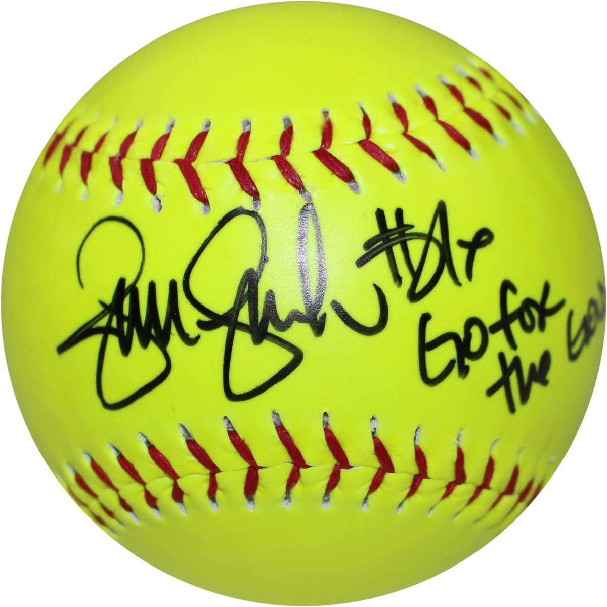 Jennie Finch Signed Yellow Softball with "Go for the Gold" Insc