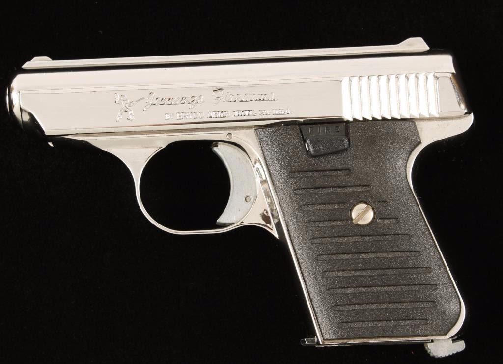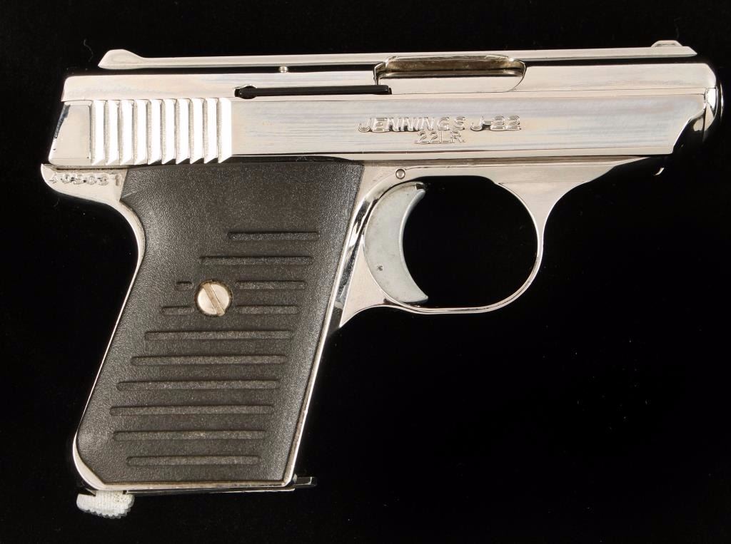 Single-action semi automatic hammerless pocket pistol chambered in .22 Long Rifle. Features a nickel plated finish, 2.5" barrel, fixed sights, partially serrated slide, thumb safety lever, 6 round magazine and grooved black plastic grips. Includes a belt loop black nylon Uncle Mike's Sidekick holster and extra magazine. Finish show only few superficial scratches. Action is smooth and bore is good. Condition is excellent. ***Modern Firearm***
