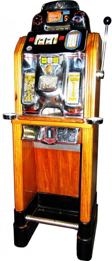 Jennings Five Cent "Monte Carlo" Floor Model Slot Machine. Excellent original working condition.
