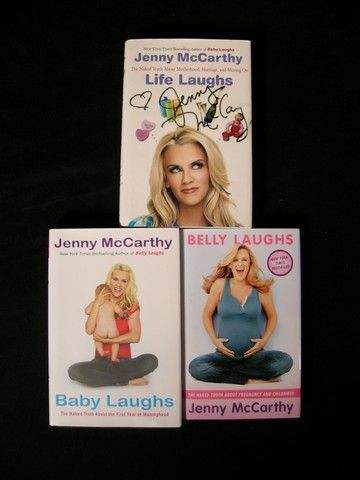 Three autographed hardcover books by Jenny McCarthy including "Life Laughs", "Belly Laughs" and "Baby Laughs". (Approx. 9x6 each)
