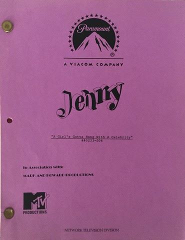 Jenny "A Girl's Gotta Hang with a Celebrity" original script from Jenny McCarthy's 1997 film. Comes with a letter of provenance from David Defino who is an Academy Award winning effects artist and Emmy winning lighting technician. He was the foreman at Gene Young Effects and worked on many amazing, iconic movies and commercials as well as special government projects and private industry and museums. (9x11)