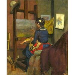 Oilpainting, a tergo on canvas: Ingeborg Westfeldt pained by her good friend Jenny Nyström Paris 1884, 46 x 38 cm; repairs and retouches