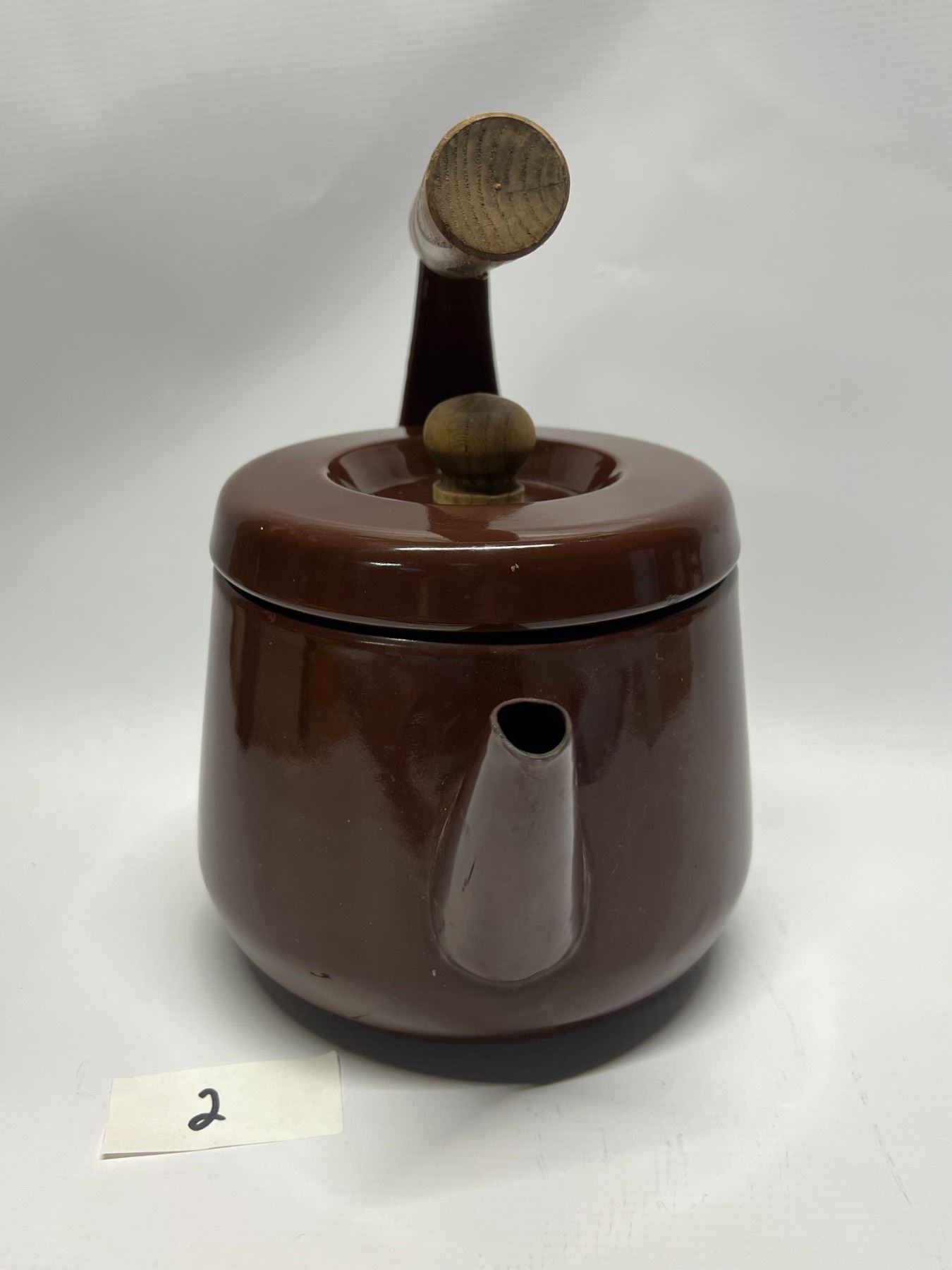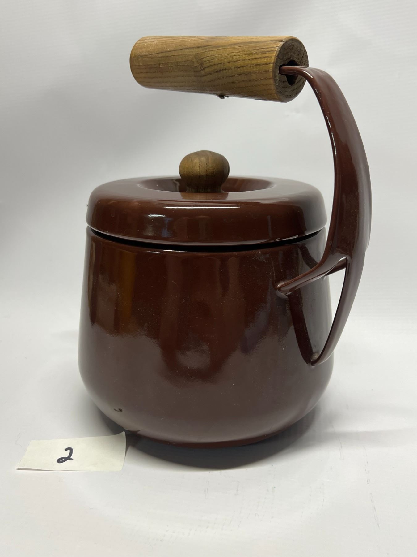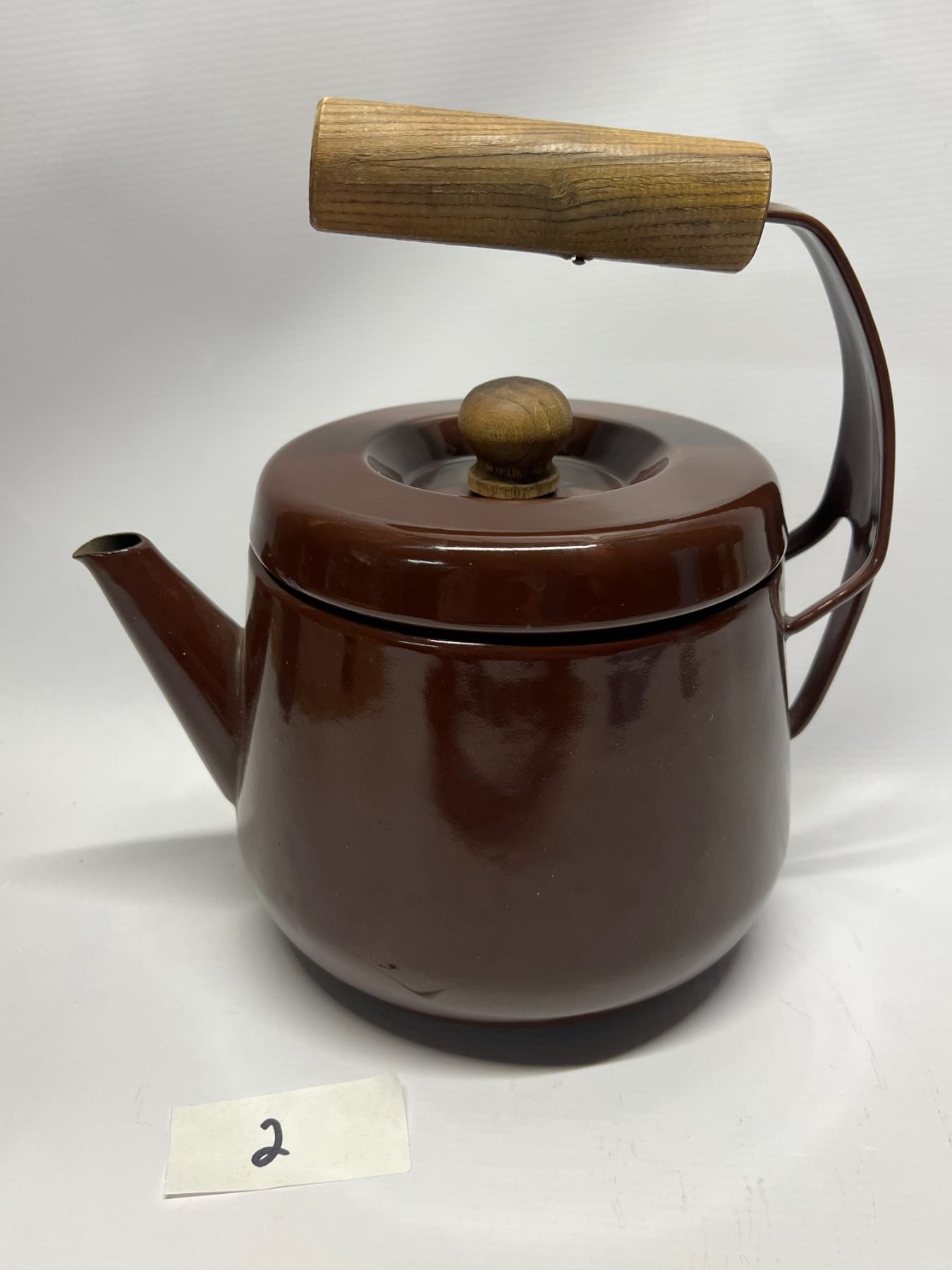 Jens Quistgaard Mid Century Koben Style Brown Enamel Tea Pot Kettle Appr: 9x8"