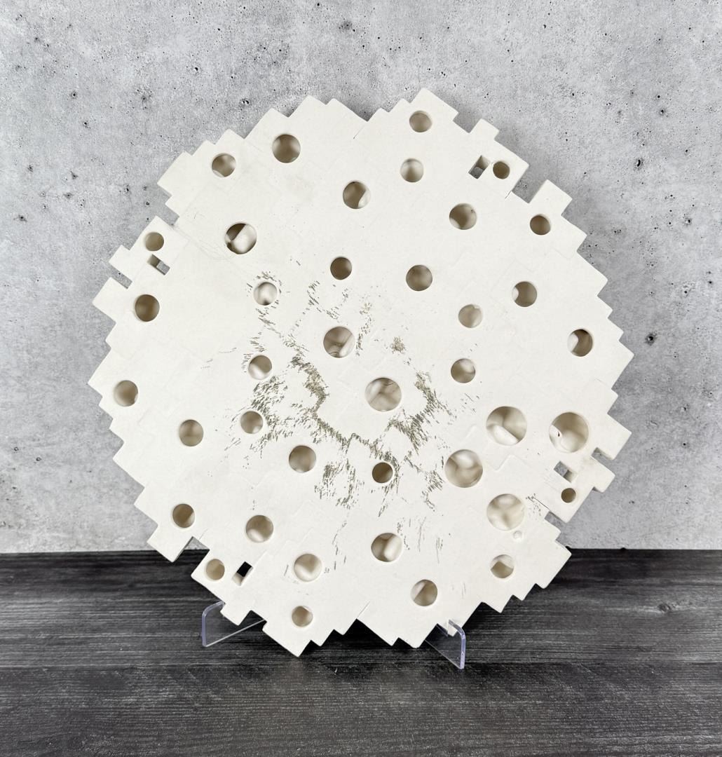 13 1/2" by 12 5/8" by 1 1/2". Jeremy Hatch received an MFA from the New York State College of Ceramics at Alfred University, and a BFA from Emily Carr University in Vancouver, Canada. He has been active in solo exhibitions, collaborative projects and group shows at a diverse range of venues including: The Canadian Clay and Glass Gallery, Waterloo, The Urban Institute for Contemporary Art, Grand Rapids, The Icheon World Ceramic Center, Icheon, Korea, The Holter Museum, Helena, Montana, and the Duolun Museum of Contemporary Art, Shanghai, China. His work has been the subject of reviews and articles in Ceramics Monthly, Azure Magazine among others. Hatch has been the recipient of residencies at the Watershed Center for the Ceramic Arts, The Archie Bray Foundation, The European Ceramic Work Center, Bemis Center for Contemporary Art, the Art/Industry Program at Kohler Company, and Medalta. He is currently an associate professor at Montana State University. Hatch is the founder of Ricochet Studio Inc. Ricochet Studio is dedicated to producing well designed, well crafted objects that span a broad spectrum of purposes: from functional to decorative, architectural to domestic, experimental to traditional. The studio focuses on creating limited edition ceramic pieces in collaboration with artists from various disciplines. Visit Ricochet Studio for current works.