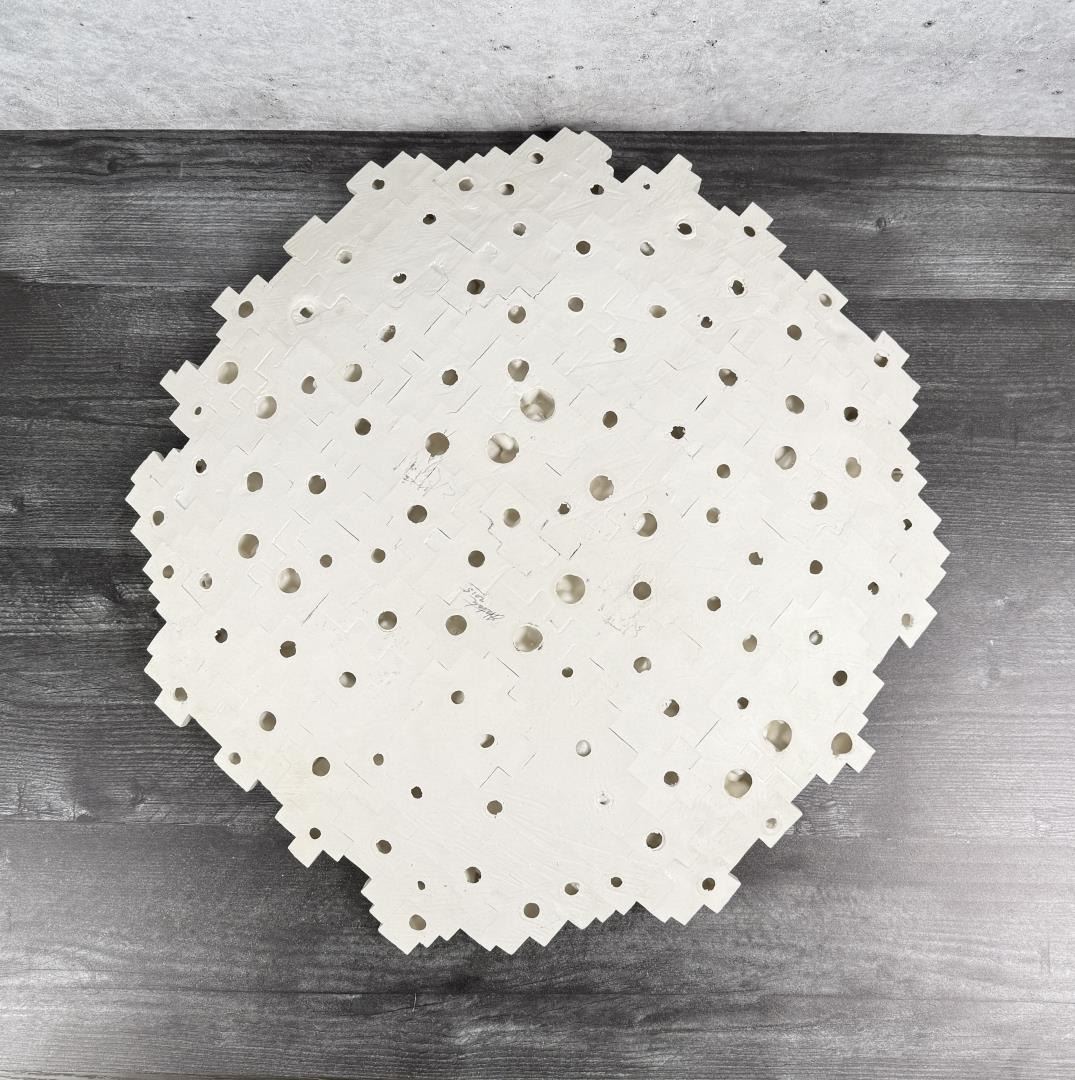 22 1/2" diameter, 3" tall. Jeremy Hatch received an MFA from the New York State College of Ceramics at Alfred University, and a BFA from Emily Carr University in Vancouver, Canada. He has been active in solo exhibitions, collaborative projects and group shows at a diverse range of venues including: The Canadian Clay and Glass Gallery, Waterloo, The Urban Institute for Contemporary Art, Grand Rapids, The Icheon World Ceramic Center, Icheon, Korea, The Holter Museum, Helena, Montana, and the Duolun Museum of Contemporary Art, Shanghai, China. His work has been the subject of reviews and articles in Ceramics Monthly, Azure Magazine among others. Hatch has been the recipient of residencies at the Watershed Center for the Ceramic Arts, The Archie Bray Foundation, The European Ceramic Work Center, Bemis Center for Contemporary Art, the Art/Industry Program at Kohler Company, and Medalta. He is currently an associate professor at Montana State University. Hatch is the founder of Ricochet Studio Inc. Ricochet Studio is dedicated to producing well designed, well crafted objects that span a broad spectrum of purposes: from functional to decorative, architectural to domestic, experimental to traditional. The studio focuses on creating limited edition ceramic pieces in collaboration with artists from various disciplines. Visit Ricochet Studio for current works.