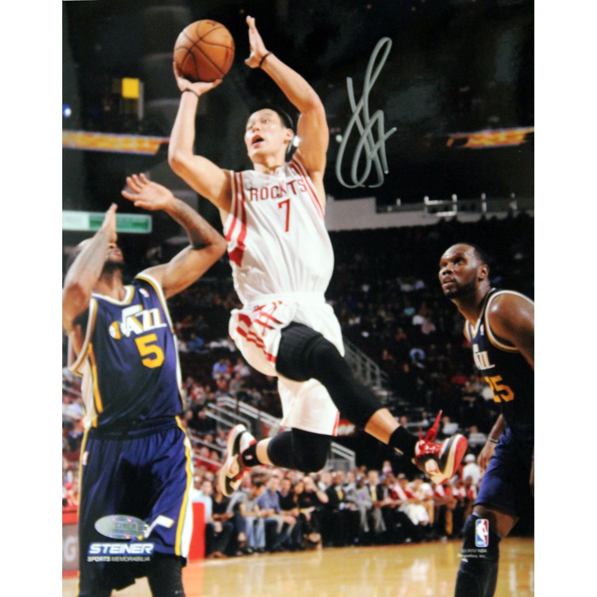 Jeremy Lin Signed Drive vs Jazz 8x10 Photo