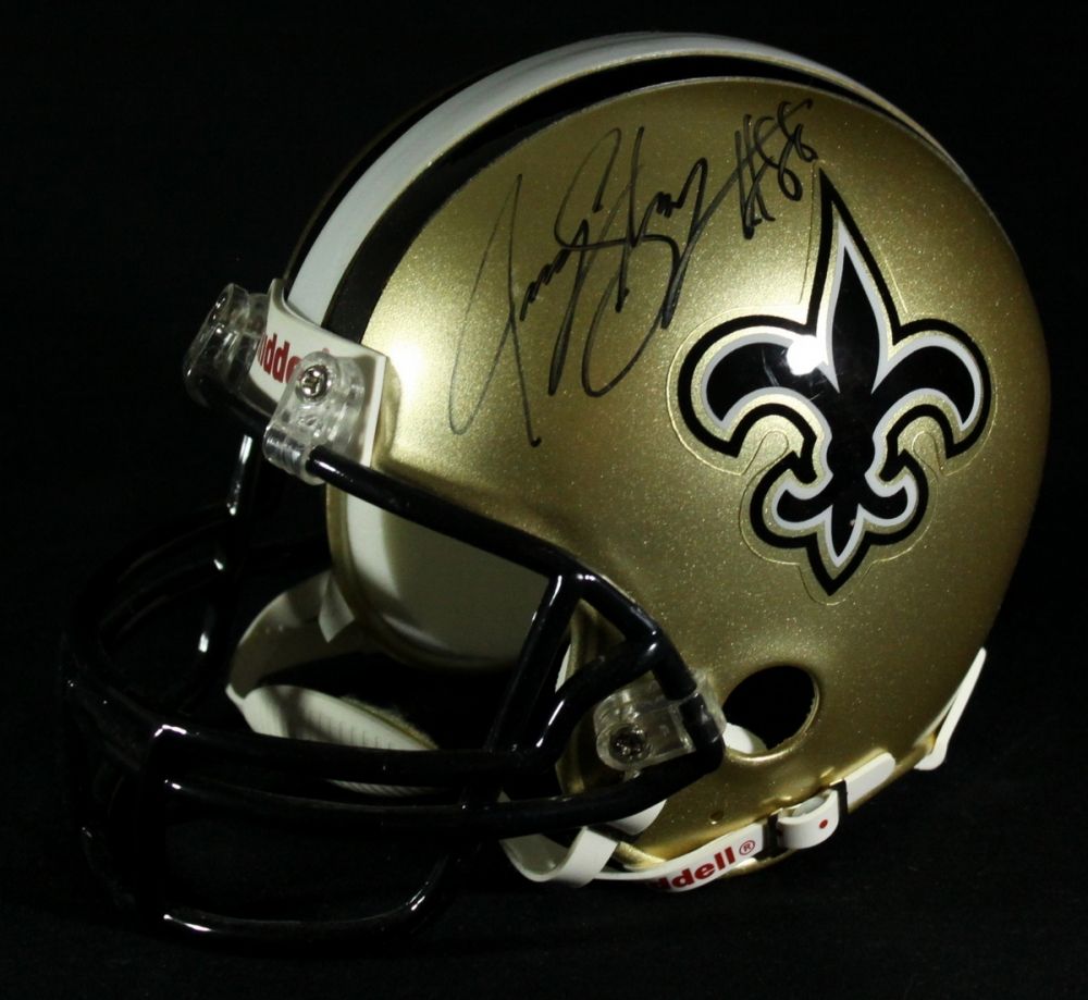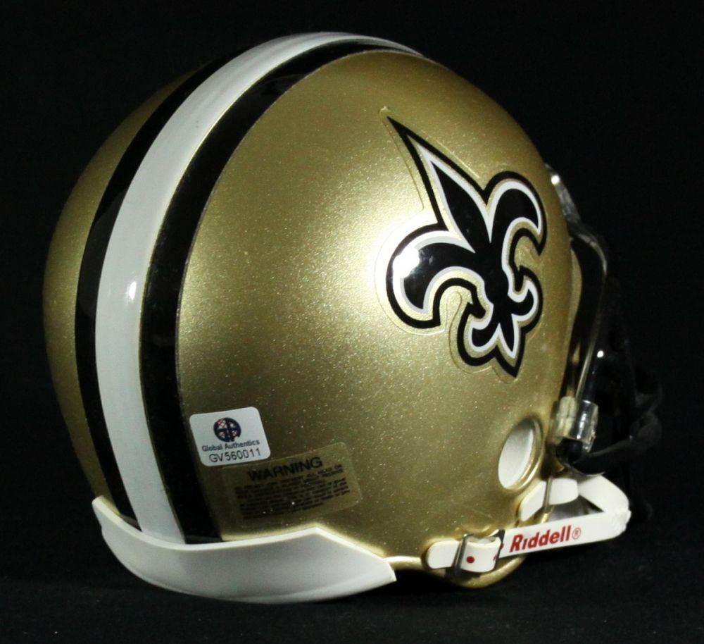 Riddell Saints mini-helmet hand-signed in black felt tip pen. The autograph has been reviewed and authenticated by Global Authentics (GA) and includes their official serially numbered hologram.