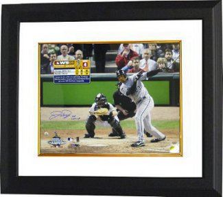 Jermaine Dye won the World Series MVP with the White Sox in 2005. Dye bats and throws right-handed and, in his prime, was known for his ability to hit for power and his powerful throwing arm. Jermaine Dye has hand autographed this Chicago White Sox 16x20 Photo with 05 WS MVP inscription. Leaf Authentics Hologram and Certificate of Authenticity from Athlon Sports. Custom White Mat and Premium Black Frame as shown.