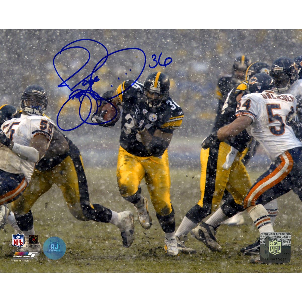 Jerome Bettis Pittsburgh Steelers Signed Rushing in Snow 8x10 Photo (AJ Sports Auth)