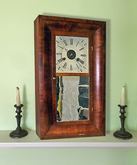 Jerome OG Shelf clock with hand painted dial, nice label.