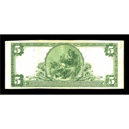 <B>Jerome, PA</B></I> - $5 1902 Plain Back Fr. 608 <B>The First NB</B></I> Ch. # 12029<BR>A very rare Somerset County bank, with this by far the nicer of the two reported large size examples. A miniscule $520 was outstanding from here at the bank's close in early 1935, so few other large notes can be expected to surface. <B>Very Fine,</B></I> with sea green signatures.<BR><BR><b>Shipping:</b> Coins & Currency (<a target="_blank" href="http://www.heritageauctions.com/common/shipping.php">view shipping information</a>)