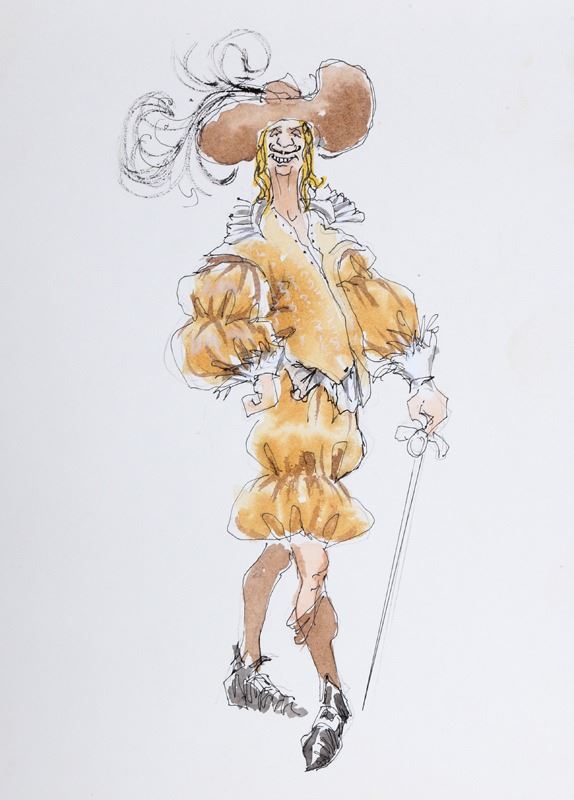 Jeronimo, Man with Fabulous Hat and Yellow Outfit, Watercolor, Gouache, and Ink Drawing
