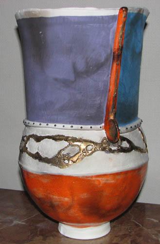 Title: Jerry Caplan Ceramic Vase with Scrolled Handles