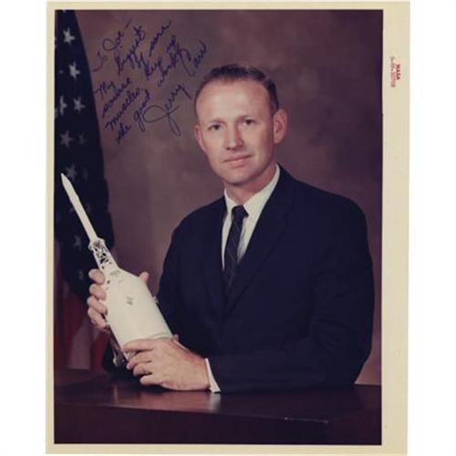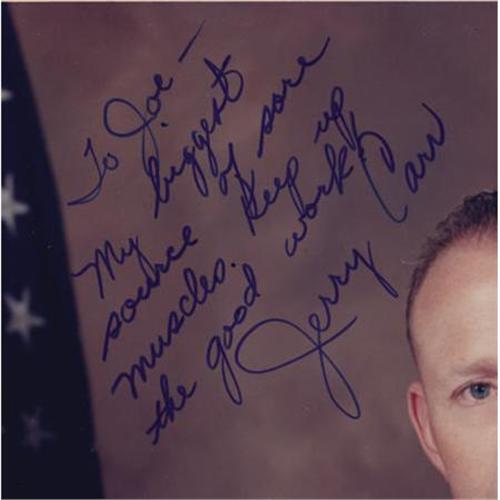 <B>Jerry Carr Signed Color Photograph,</B></I> 8" x 10", "<I>To Joe-/ My biggest/ source of sore/ muscles. Keep up /the good work!/ Jerry Carr.</B></I>" <I>From the collection of renowned former physical trainer of the astronauts Joe Garino. This lot is accompanied by a signed certificate of authentication from Garino verifying its provenance.</B></I><BR><BR><b>Shipping:</b> Flat Material, Small (<a target="_blank" href="http://www.heritageauctions.com/common/shipping.php">view shipping information</a>)