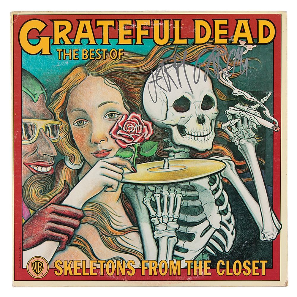 Skeletons from the Closet: The Best of Grateful Dead album signed on the front cover in silver ink by Jerry Garcia. In fine condition. The record is included. A desirable example of a classic Grateful Dead compilation signed by the band's legendary frontman.