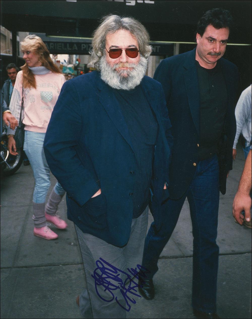 Color glossy 8 x 10 photo of Garcia walking down a city sidewalk, signed in blue felt tip. In fine condition. Pre-certified Roger Epperson/REAL and RRAuction COA.
