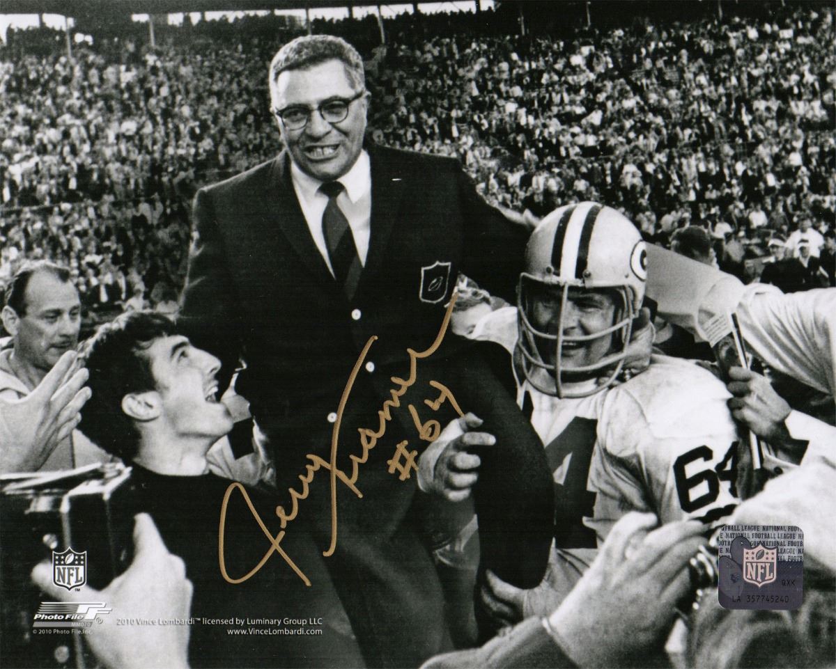 Jerry Kramer signed Green Bay Packers carrying Vince Lombardi off field black and white 8x10 photo. Item comes with a Schwartz Sports Memorabilia tamper-proof numbered hologram and Certificate of Authenticity which can be verified online.