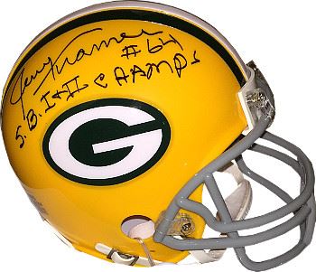 Jerry Kramer hand autographed Green Bay Packers 16x20 Photo. Steiner Sports Hologram and Certificate of Authenticity from Steiner Sports. "Jerry established himself as a star with the Green Bay Packers, was named All-Pro five times, and was a member of one of the greatest dynasties in the history of the league. In 1967, he made one of the most famous blocks in one of the most storied championship games in NFL history. Two years later, he was voted as the best guard in the first 50 years of pro football. Kramer won two Super Bowl rings and also earned a spot on the all-time all-Madden team. Jerry Kramer has hand autographed this Green Bay Packers Mini Helmet #64 SB I & II Champs inscription. Schwartz Sports Hologram and Certificate of Authenticity from Athlon Sports Collectibles.