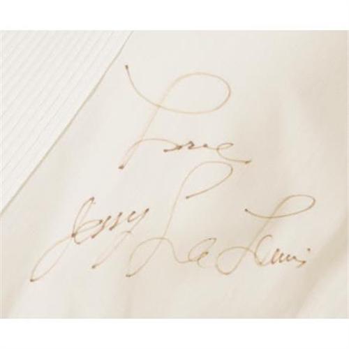 <B>Jerry Lee Lewis Signed Shirt.</B></I> This white tuxedo shirt is inscribed "Love, Jerry Lee Lewis" by the famous rocker on the left breast in black marker. In Very Fine to Excellent condition with some mild discoloration to the the fabric. <I>Accompanied by LOA from PSA/DNA.</B></I><BR><BR><b>Shipping:</b> Clothing, Costumes & Jerseys (<a target="_blank" href="http://www.heritageauctions.com/common/shipping.php">view shipping information</a>)