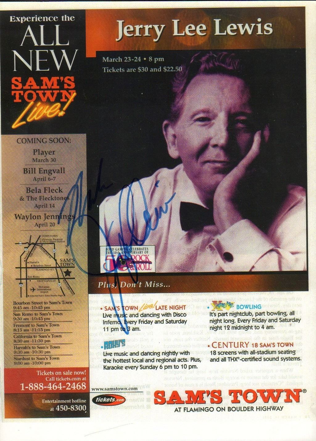 A original oversized advertisement signed by Jerry Lee Lewis with COA.