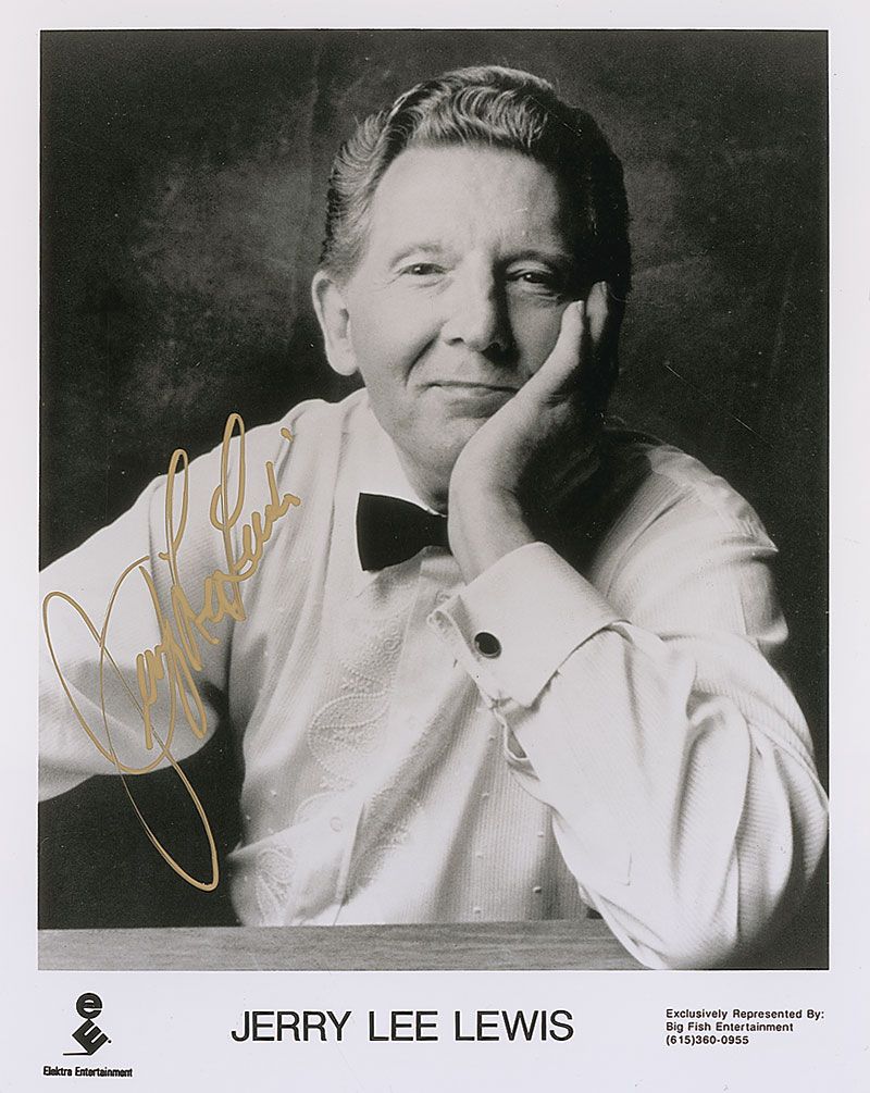 Glossy 8 x 10 promotional photo, signed in gold ink. In very fine condition.