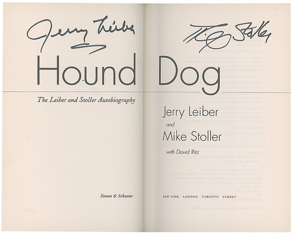Signed book: Hound Dog. First edition, first printing. NY: Simon & Schuster, 2009. Hardcover with dustjacket, 6.5 x 9.5, 322 pages. Signed on the title page in black felt tip by Leiber and Stoller. In very fine condition.