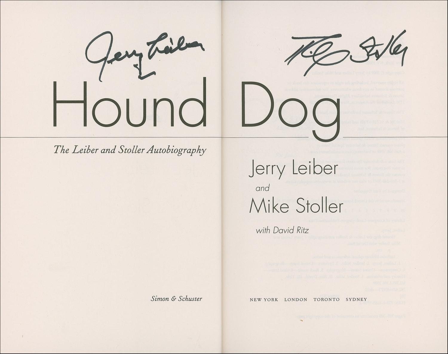 Signed book: Hound Dog. First edition, first printing. NY: Simon & Schuster, 2009. Hardcover with dustjacket, 6.5 x 9.5, 322 pages. Signed in black felt tip across the two-page title page by both Jerry Leiber and Mike Stoller. In fine condition.