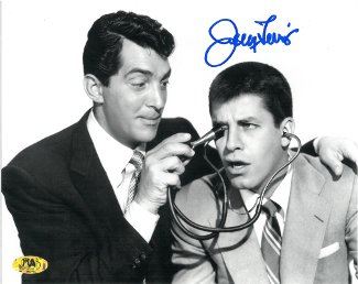 Jerry Lewis is an American comedian, actor, singer, film producer, screenwriter and film director. He is known for his slapstick humor in film, television, stage and radio. He was originally paired up with Dean Martin in 1946, forming the famed comedy team of Martin and Lewis.Dean sang some songs, and Jerry came out dressed as a busboy, dropping plates and more or less making a shambles of both Martin's performance and the club's sense of decorum. They did slapstick, reeled off old vaudeville jokes, and did whatever else popped into their heads at the moment. Jerry Lewis has hand signed this B&W 8x10 Photo with stethoscope with Dean Martin. MAB Hologram and Certificate of Authenticity from Athlon Sports.