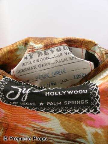Jerry Lewis' Sy Devore sport coat. Sy Devore was famous for this style of jacket and they are very sought after. A red velvet one button long sleeve 'Sy Devore' custom made jacket. (Sy Devore Jerry Lewis tag inside)