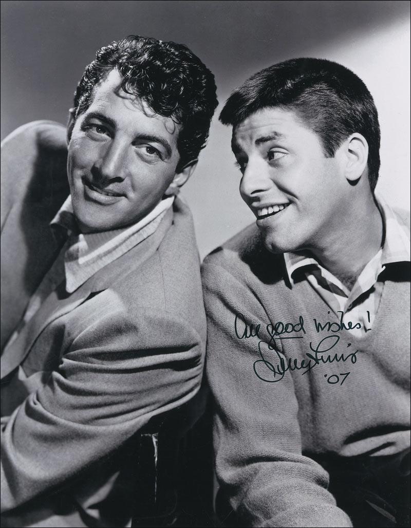 Glossy 11 x 14 photo of Lewis and his partner Dean Martin, signed in black felt tip, “All good wishes! Jerry Lewis ‘07.” In very fine condition. Pre-certified PSA/DNA and RRAuction COA.
