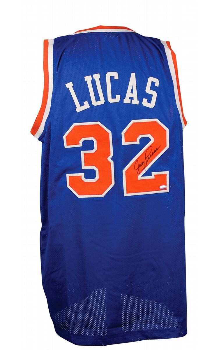 Replica New York Knicks basketball jersey, with sewn on letters and numbers, signed in black felt tip on the number on the back. In fine condition.