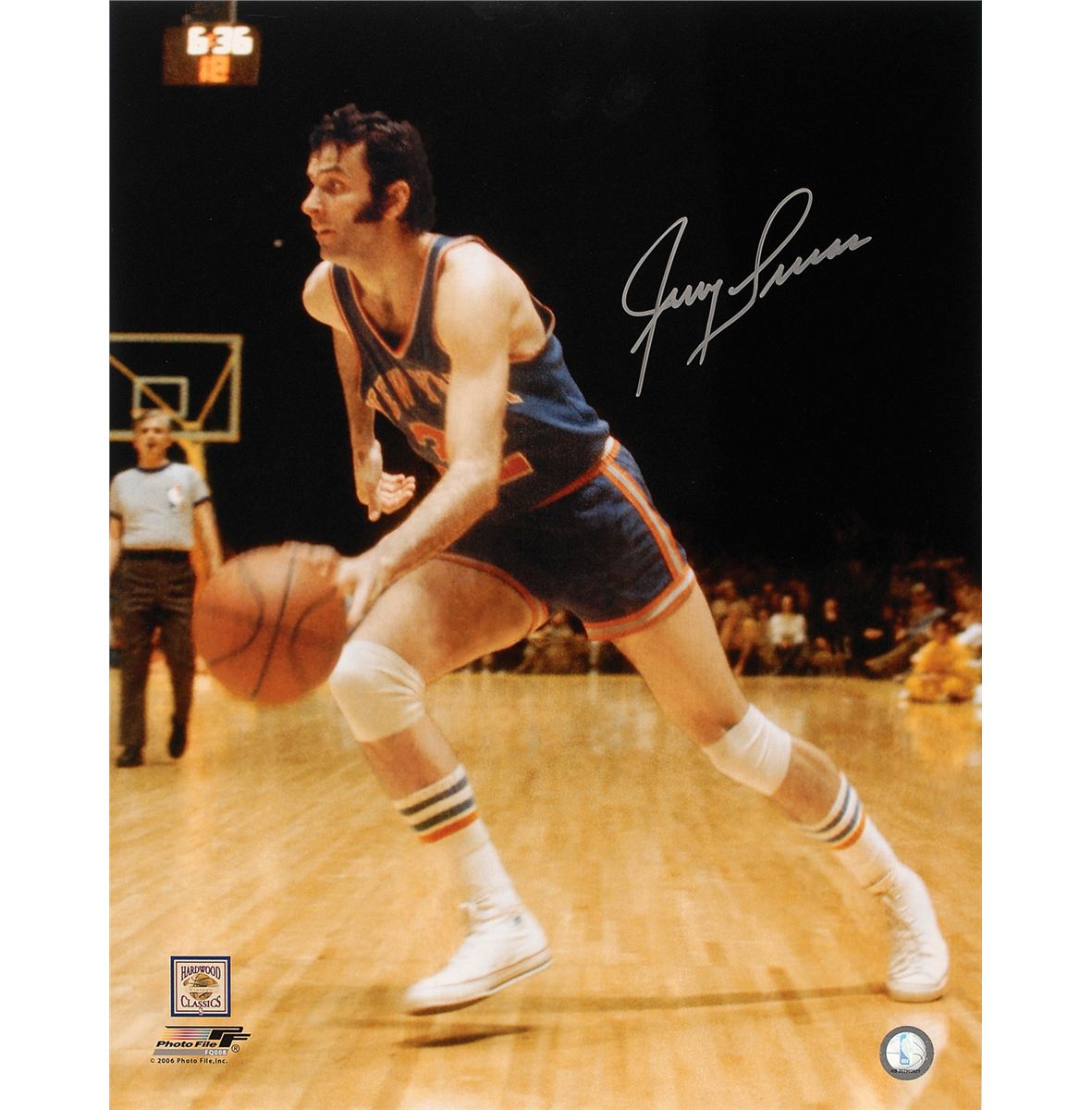 Color glossy 16 x 20 photo of Lucas on the court with the Knicks, signed in silver ink. In fine condition.